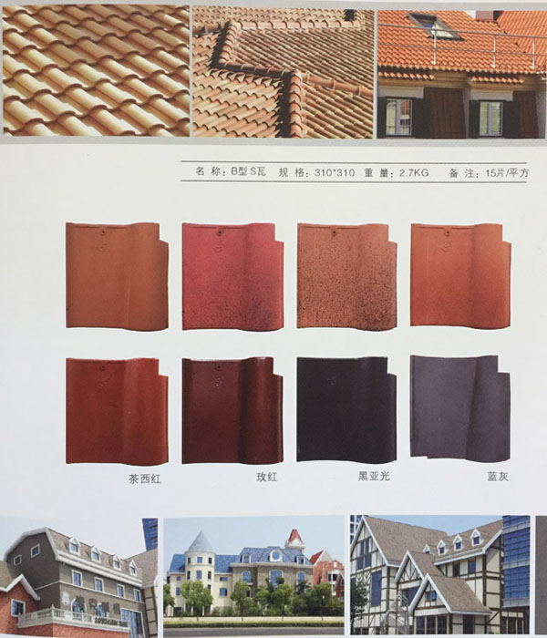 S瓦顏色:磚紅色 咖啡色 米黃色 青灰色 寶藍色等