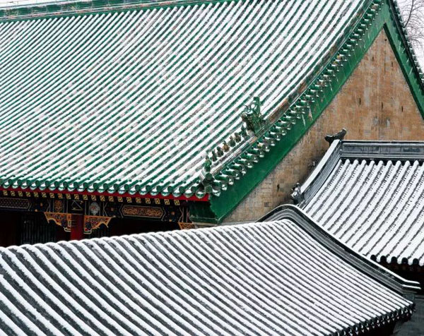 與《紅樓夢》有著不解之緣的恭王府,每到冬日,白雪、紅梅、琉璃瓦相映成趣,為游人營造了一個色彩斑斕的書畫意境。尤其是屋頂那一片片翠綠的琉璃瓦,經(jīng)歷兩百多年的風(fēng)霜雨雪和歲月侵蝕,依然色澤猶存、流光溢彩。