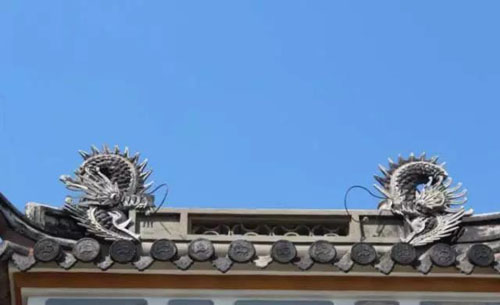 上的鴟(chi)尾演變而來的。因其安置在建筑的正脊上又稱“正吻”。形似龍而稱“龍吻”。